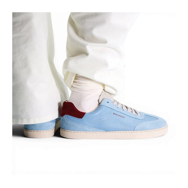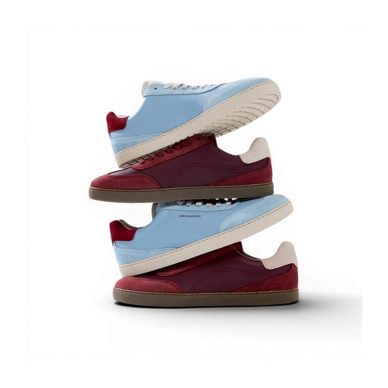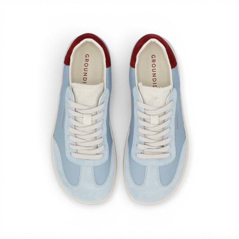 Sneakers Groundies Panama (Zero Drop, szeroka cholewka) jasnoniebieski/bordowy damskie