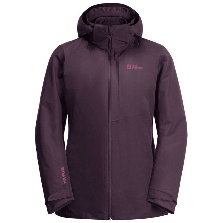 Jack Wolfskin Kurtka zimowa Bergland 3w1 (bardzo ciepła, wodoodporna i wiatroszczelna) bordowa Damska
