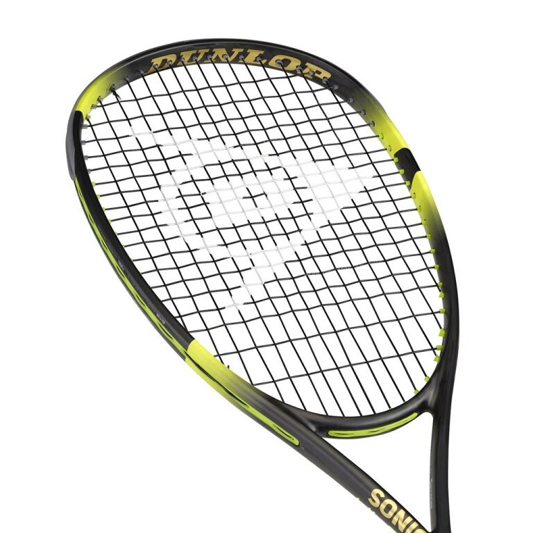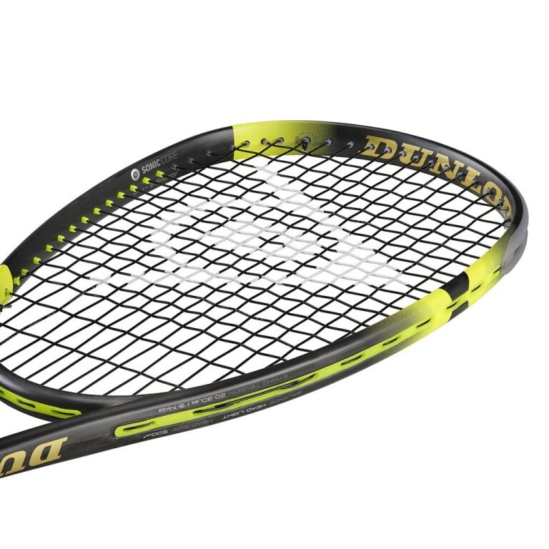 Dunlop Rakieta do squasha Sonic Core Ultimate (132g/z wyważeniem na rączkę) czarna/żółta - naciągnięta -