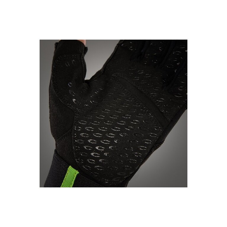 • wewnętrzna strona dłoni z wytrzymałego mikrofibry z silikonowym nadrukiem dla pewnego chwytu