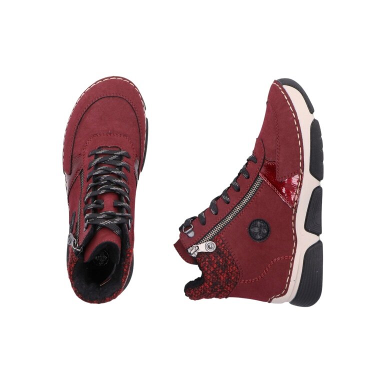 Rieker zimowe botki 45960-35 (sznurowane botki z ociepleniem, bardzo ciepłe) czerwone damskie