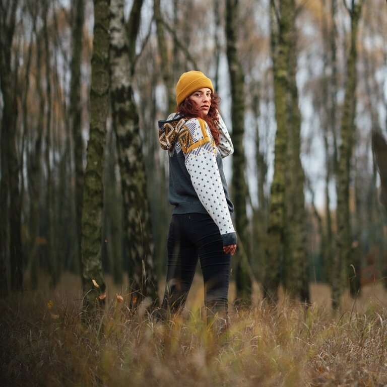 - Ten sweter z żywym wzorem kolorystycznym i kapturem został wykonany z wysokiej jakości mieszanki włókien.
