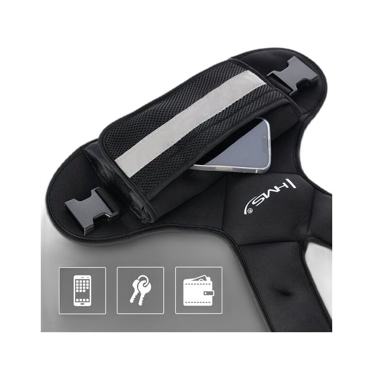 - Regulowane ramiączka zapewniają idealne dopasowanie do każdej sylwetki, a specjalny materiał neoprenowy jest miękki, odporny na pot i zapobiega przesuwaniu się kamizelki nawet podczas intensywnych ruchów.