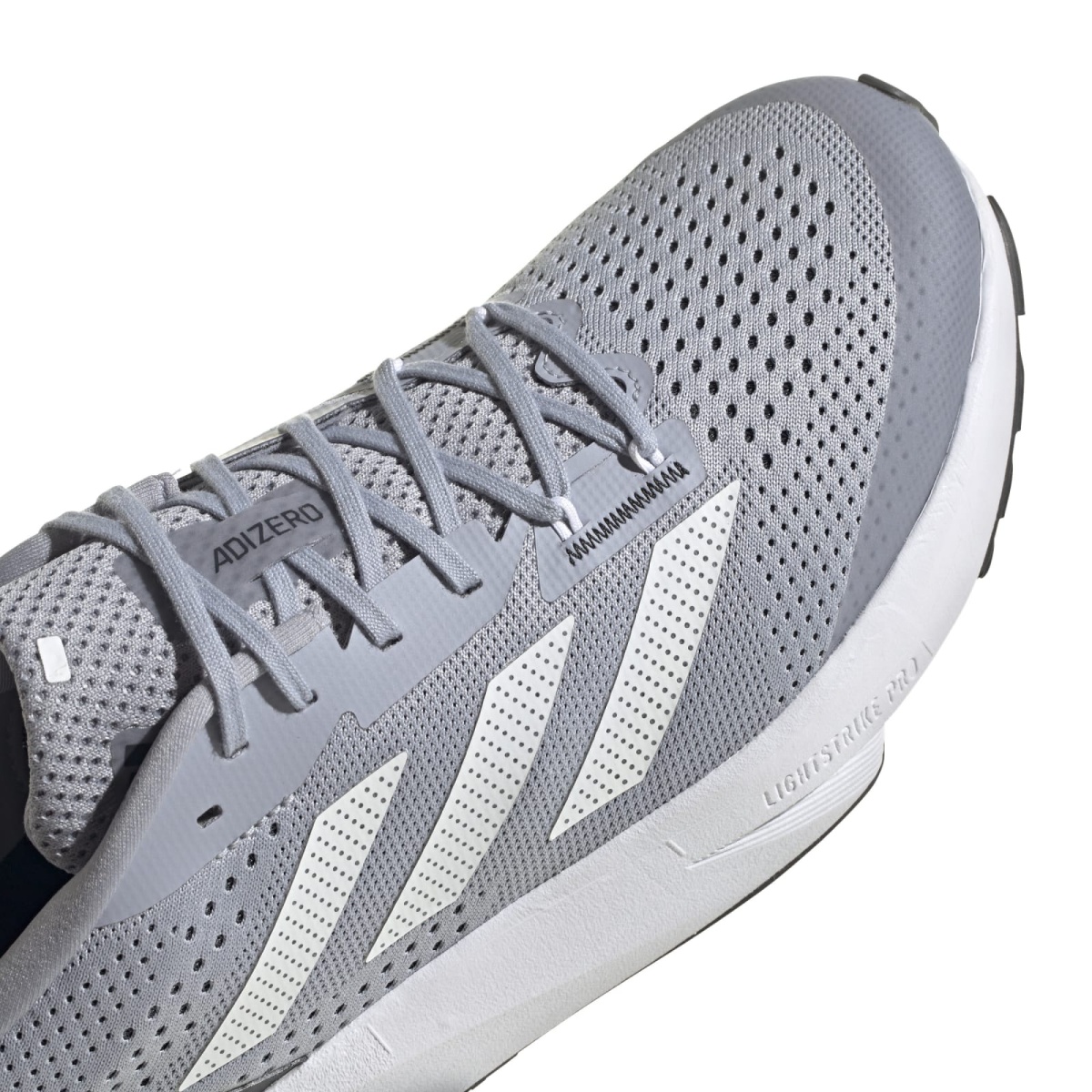 • dzięki wyściełanemu obszarowi pięty i konstrukcji języka zyskujesz długotrwały komfort noszenia, a charakterystyczny dla ADIZERO detal w obszarze pięty dopełnia wizualnie design