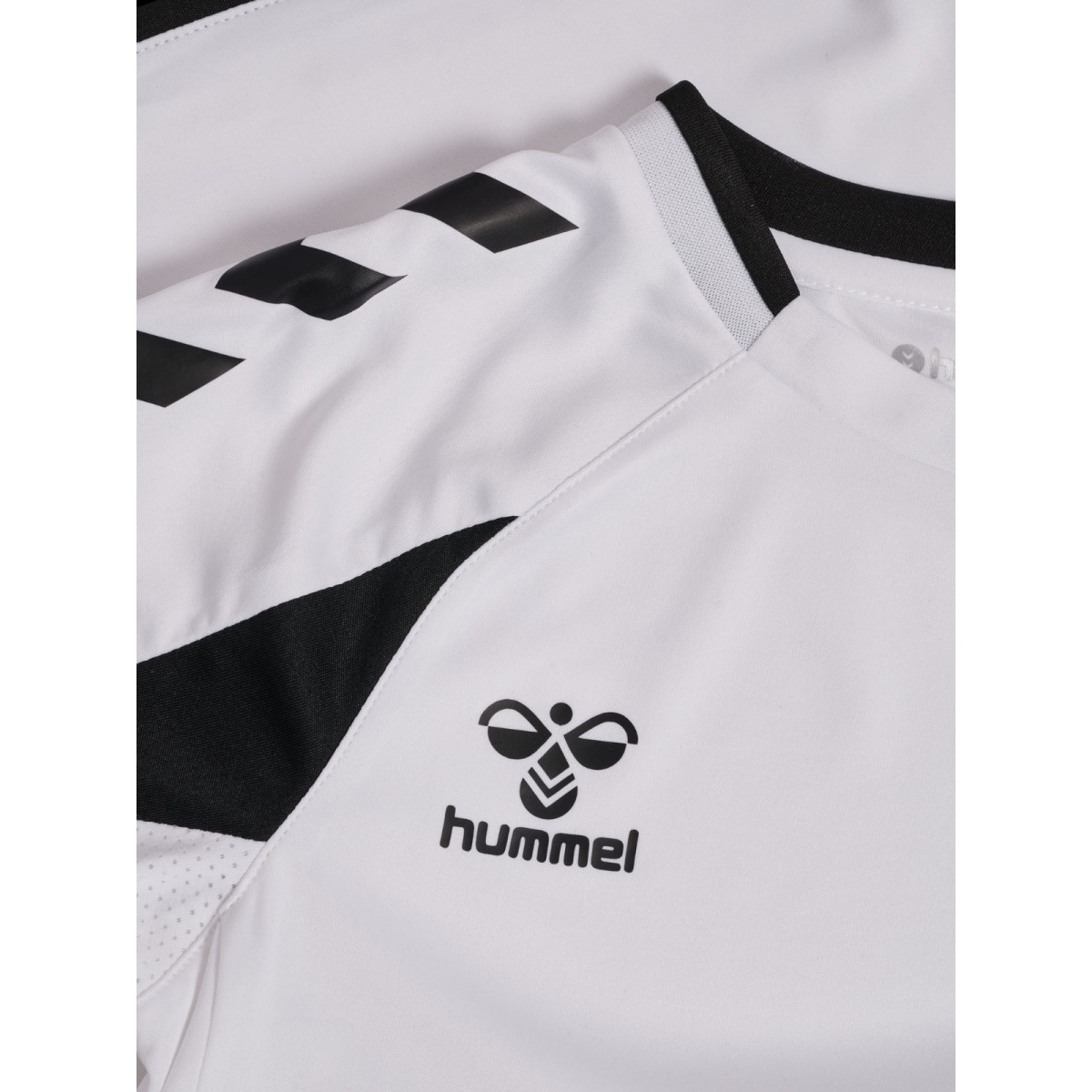 • koszulka posiada rękawy raglanowe dla lepszej swobody ruchów, kontrastowe wstawki na ramionach oraz kultowe chevrony hummel na rękawach, które podkreślają sportowy wygląd drużynowy.