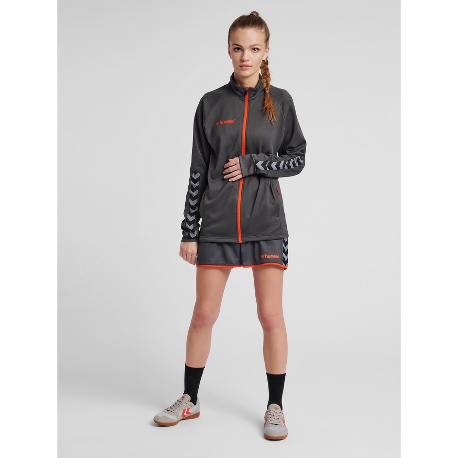 • kurtka hmlAUTHENTIC WOMEN POLY ZIP wykonana jest z dzianiny poliestrowej, która zapewnia lepszy transport wilgoci i świeże wykończenie powierzchni