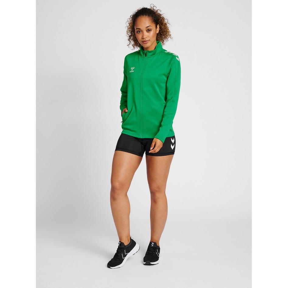 hummel Sportowa kurtka treningowa hmlCORE XK Poly Zip Sweat (materiał poliestrowy, zamek błyskawiczny z przodu) zielona damska