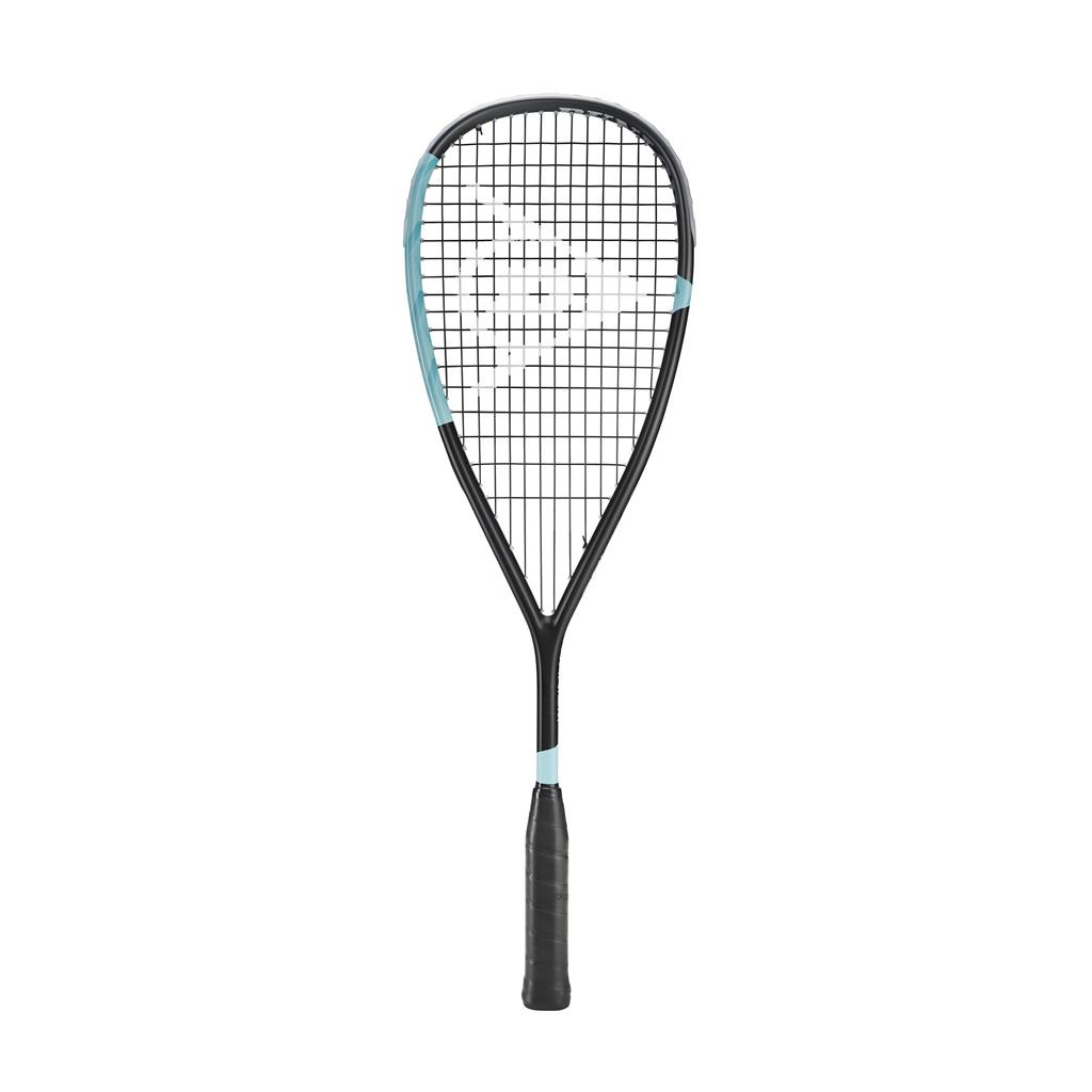 Dunlop Rakieta Squash Blackstorm Titanium SLS 130g/z wyważeniem na rączkę czarna/turkusowa - naciągnięta -
