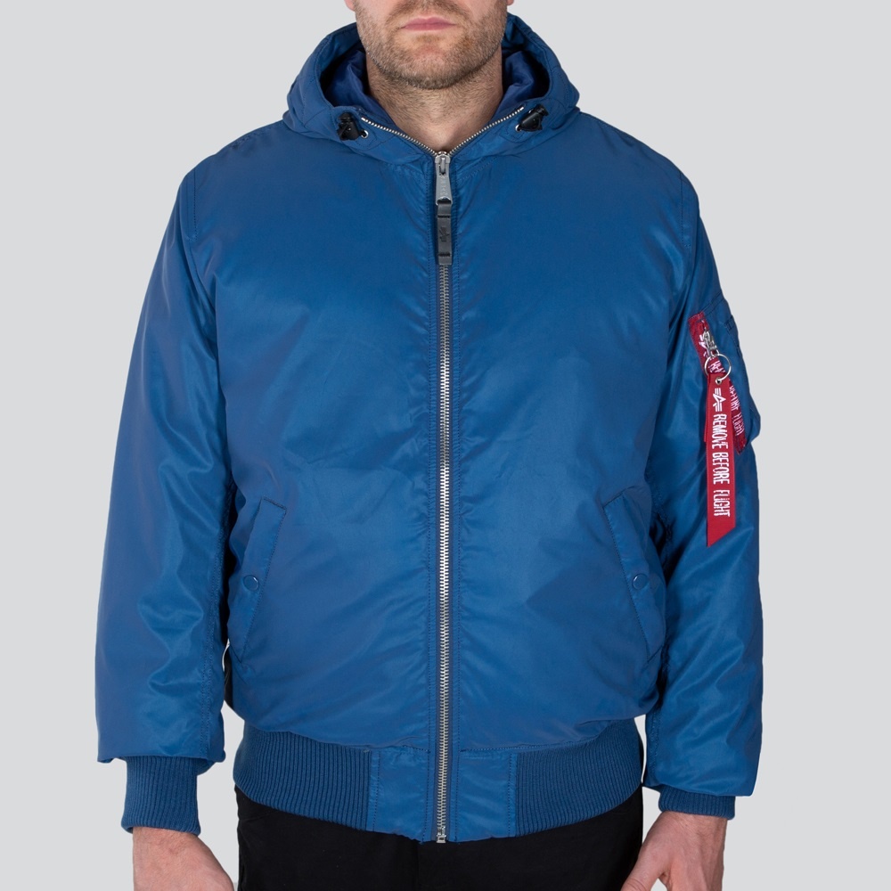 Alpha Industries Kurtka lotnicza MA-1 z kapturem odblaskowym - odblaskowa - niebieska Męska