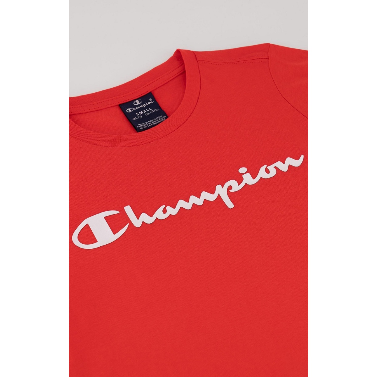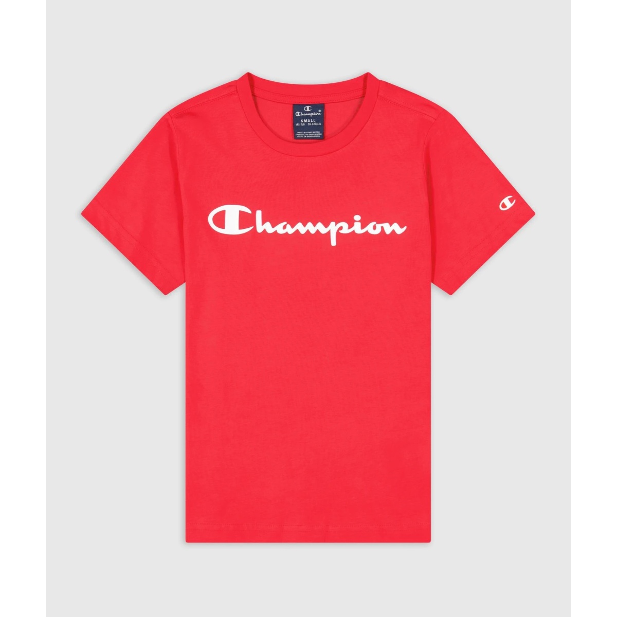 Alarm cenowy dla Champion T-shirt rekreacyjne (bawełna) Crew z logo 2023 czerwony chłopcy