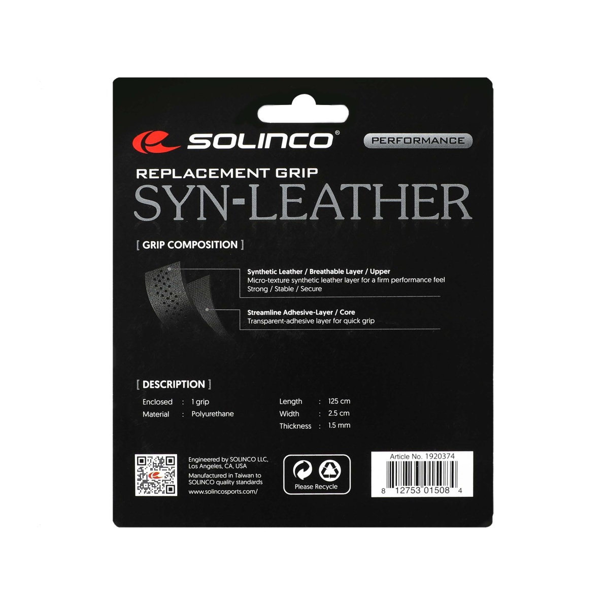 Solinco Basisband Syn Leather (syntetyczna skórzana taśma) 1,5mm czarna - 1 sztuka