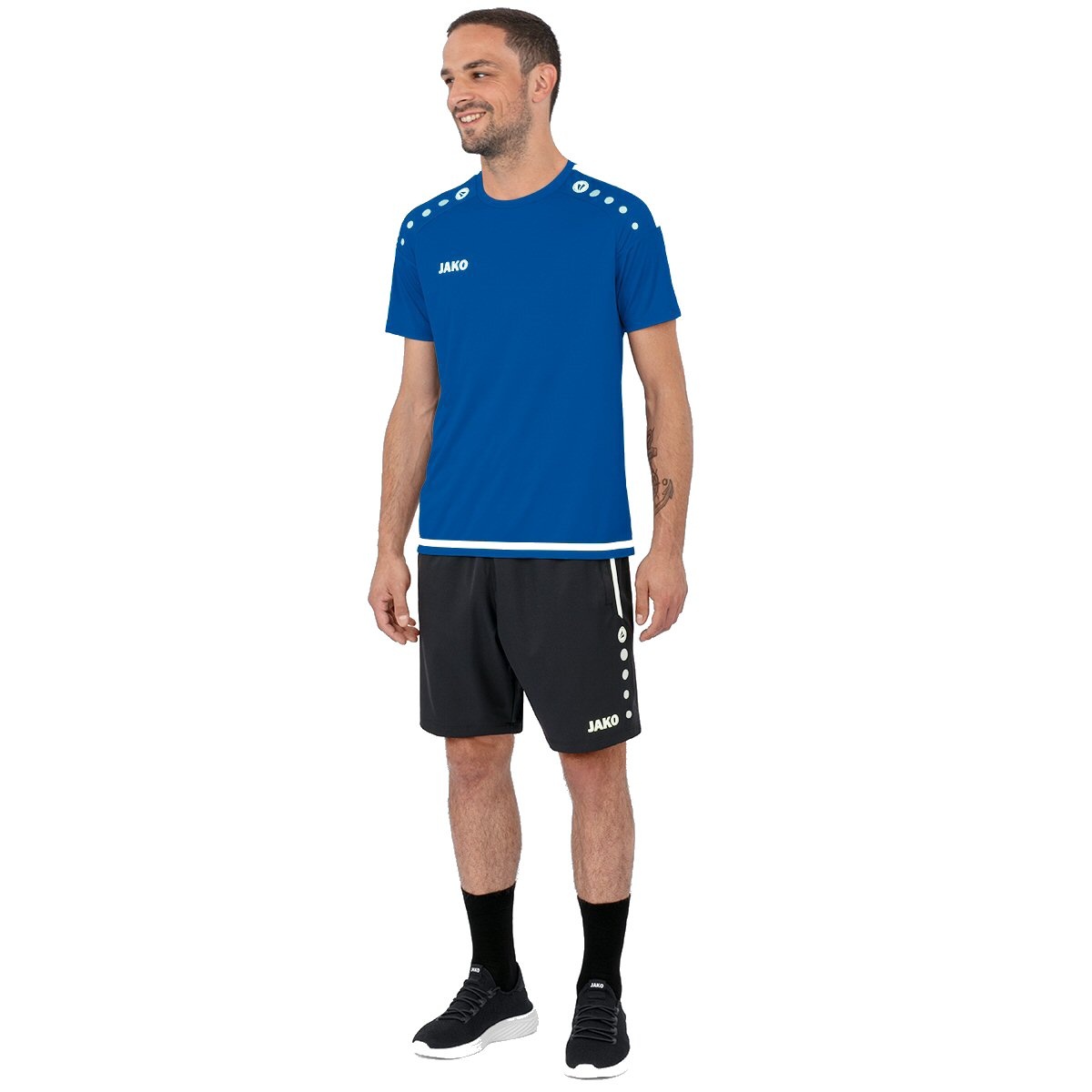 • w połączeniu z kropkami JAKO, napisem JAKO i białym wstawem z boku nadają spodenkom dynamiczny charakter