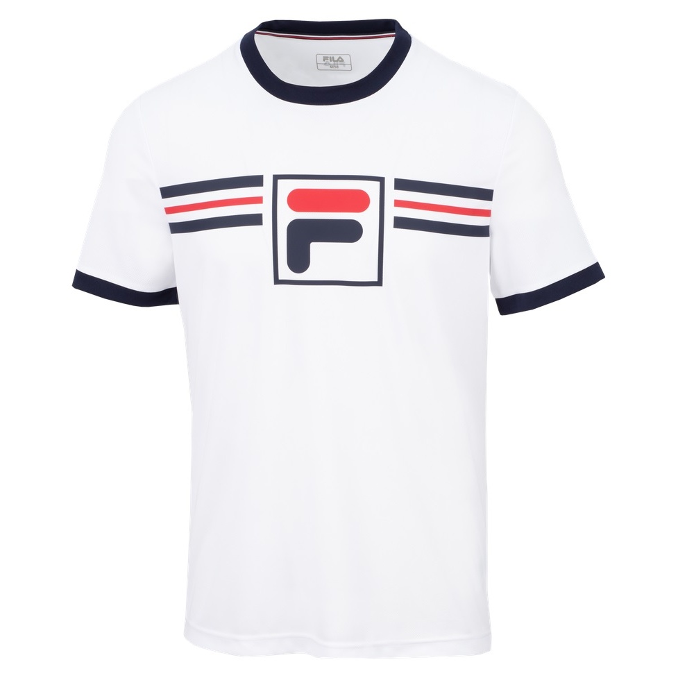 • koszulka Oscar prezentuje się z nowym logo Fila-Box i nadrukiem w paski
