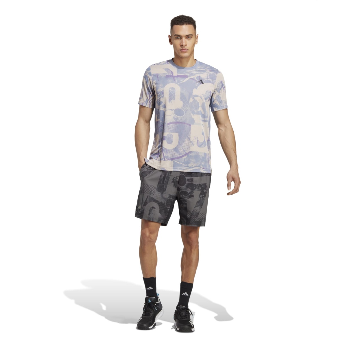• te spodenki adidas Club wyróżniają się całkowitym nadrukiem inspirowanym tenisem