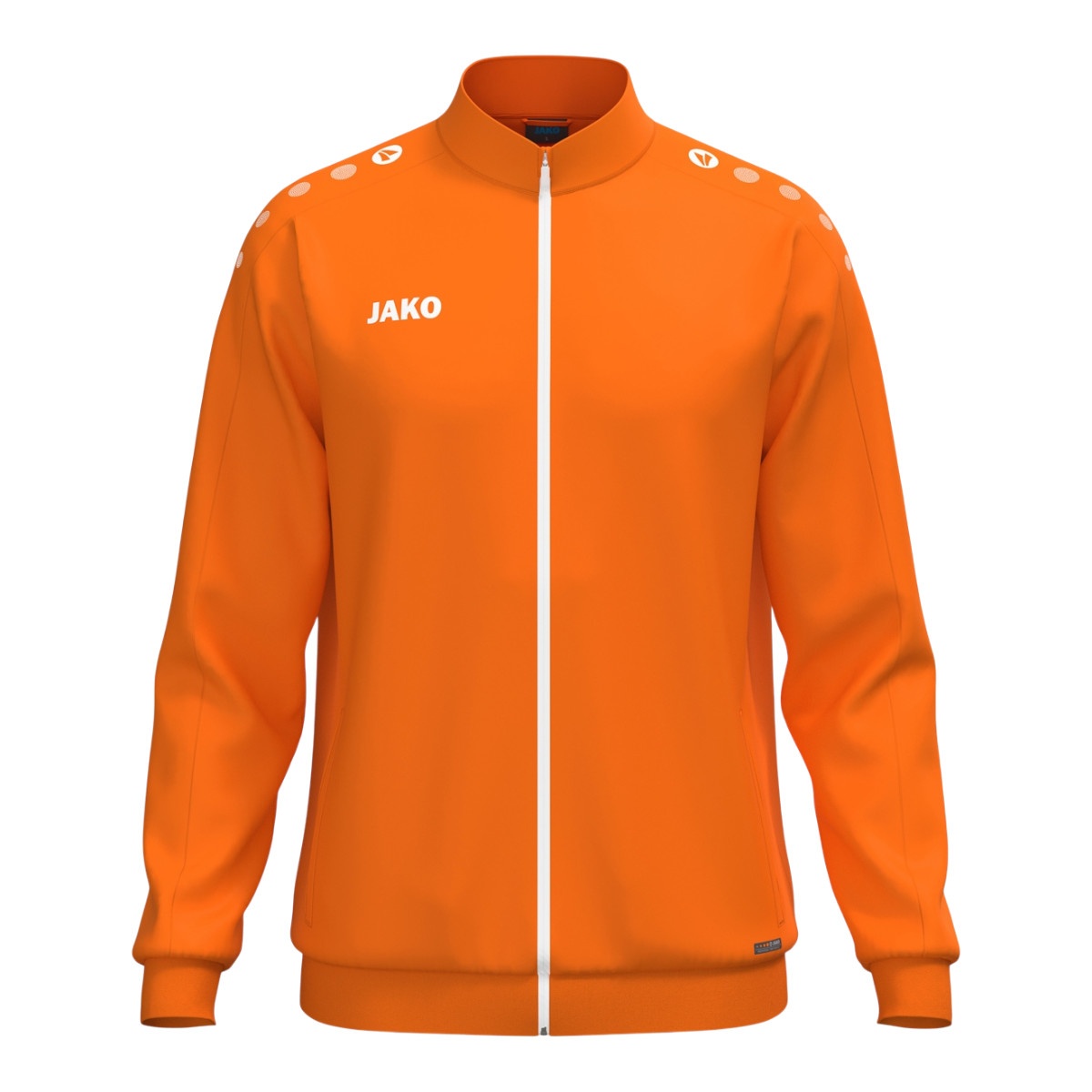 • JAKO Dots na ramieniu, logo JAKO na prawej piersi oraz zakończenia kurtki i rękawów z ribbingu zapewniają nowoczesny wygląd.
