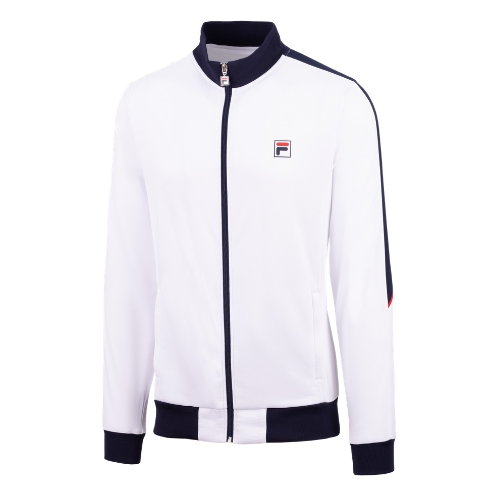 Fila Kurtka tenisowa Manuel (stojący kołnierz, 100% poliester) biała/granatowa dziecięca