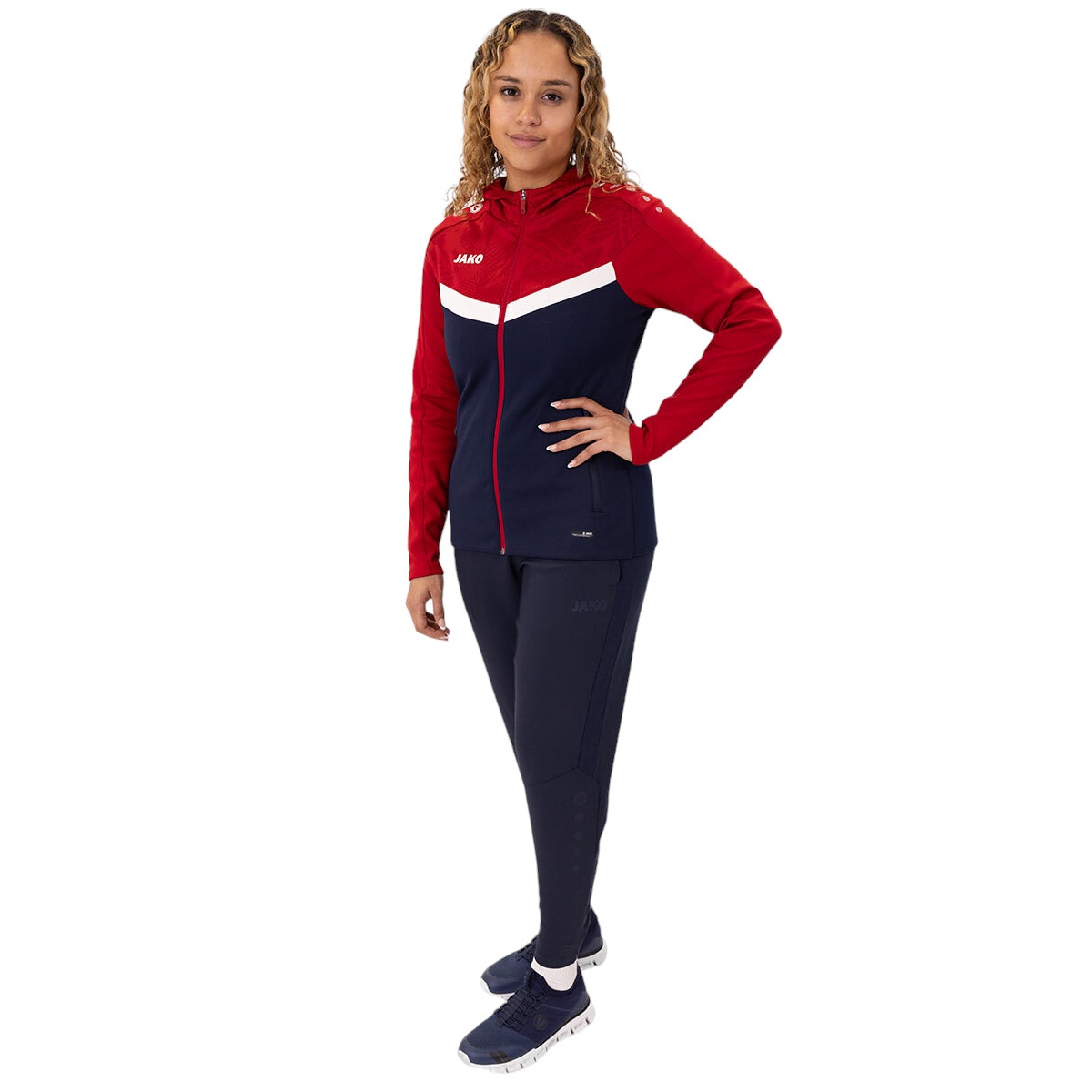 JAKO Kurtka z kapturem Iconic (Fleece z poliestru, kieszenie boczne z zamkiem błyskawicznym) granatowo/czerwona damska
