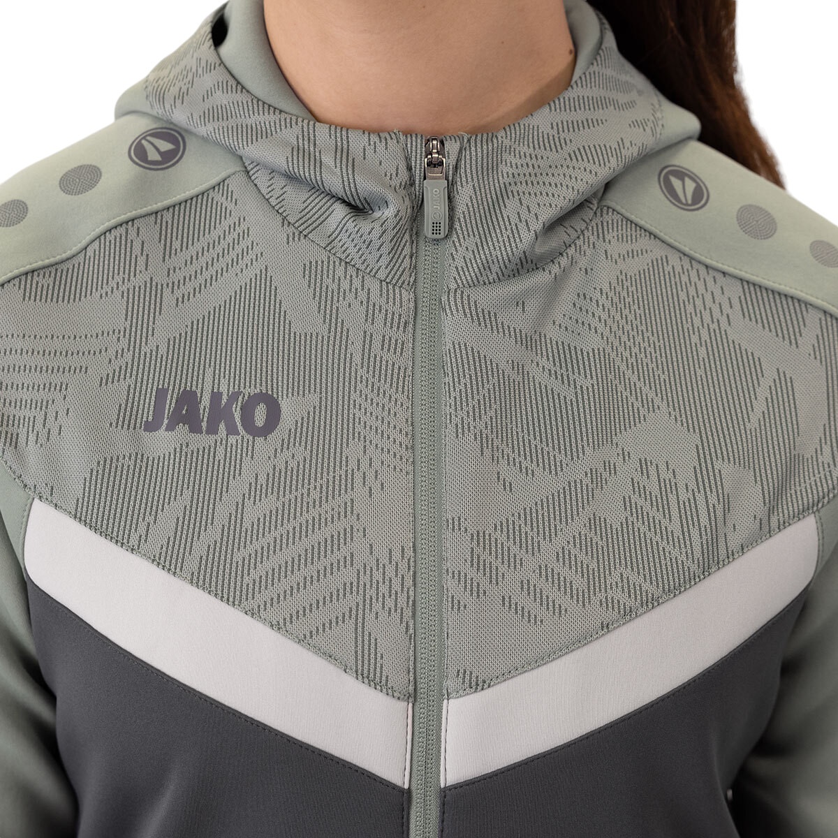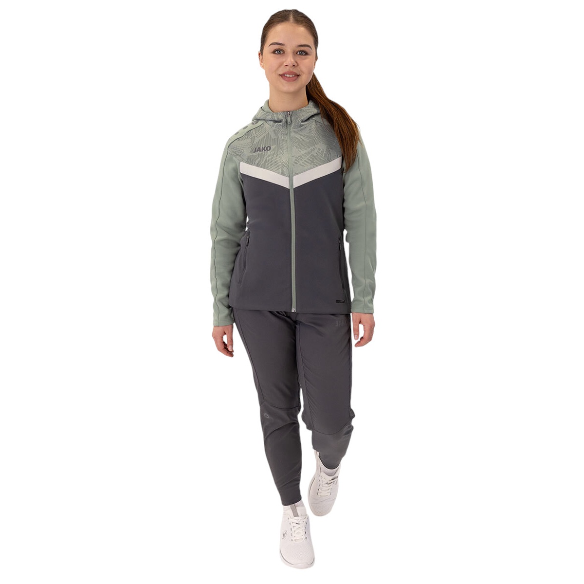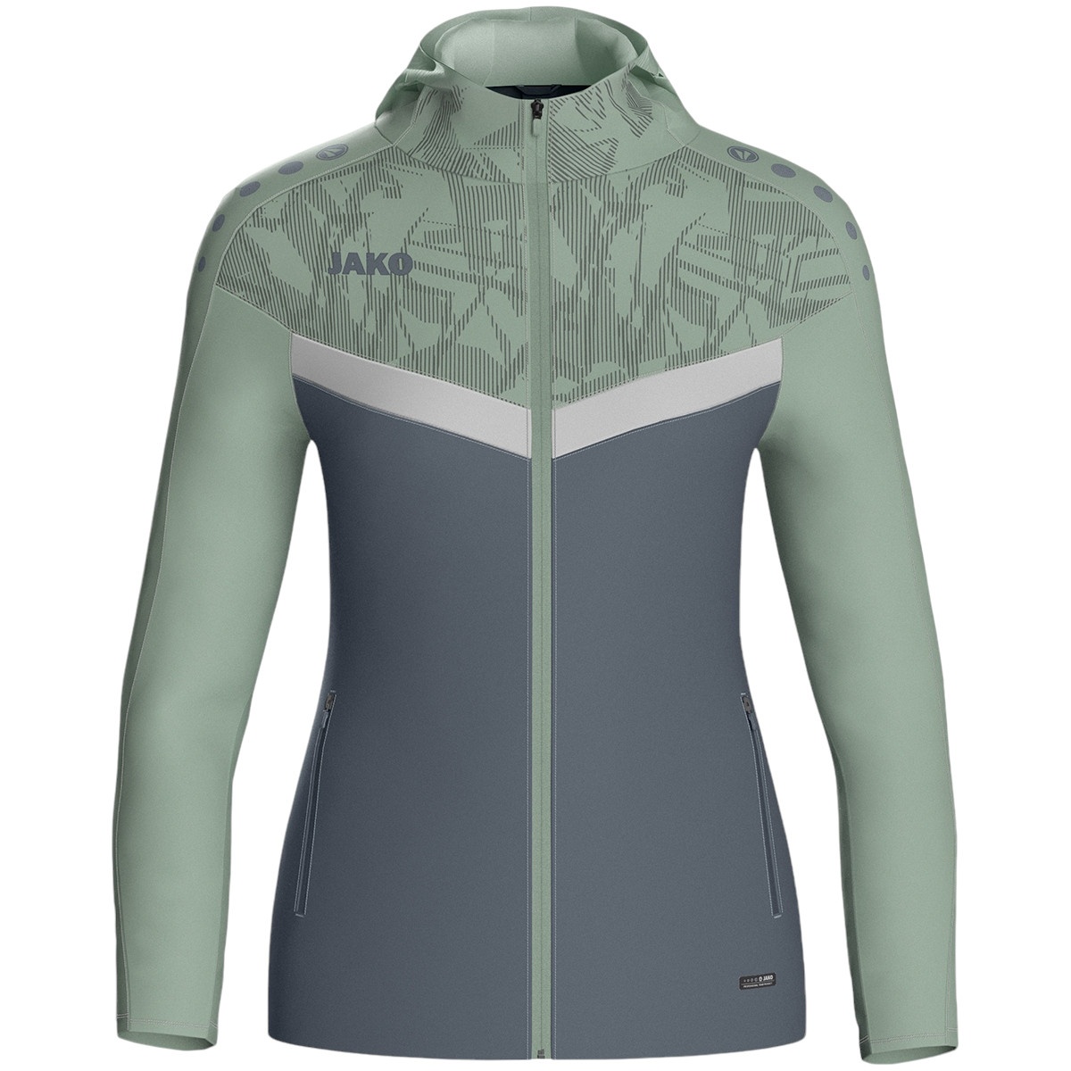JAKO Kurtka z kapturem Iconic (Fleece poliestrowe, kieszenie boczne z zamkiem błyskawicznym) antracytowo-szara/miętowa dla kobiet