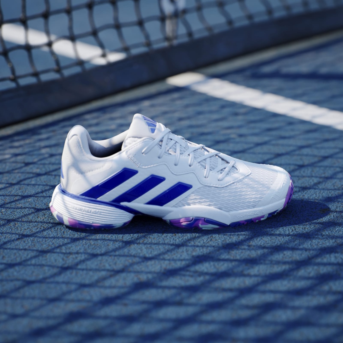 adidas Buty tenisowe Barricade Allcourt 2024 białe/niebieskie dziecięce