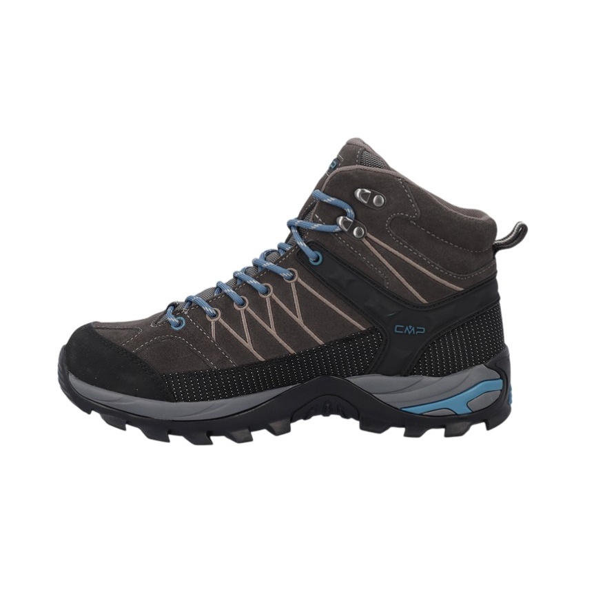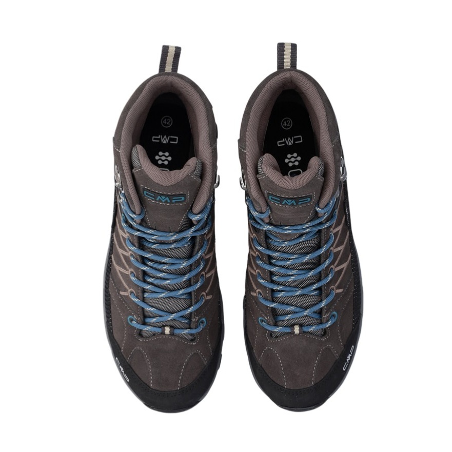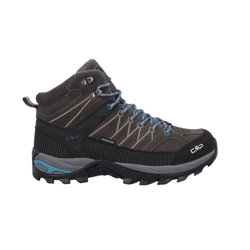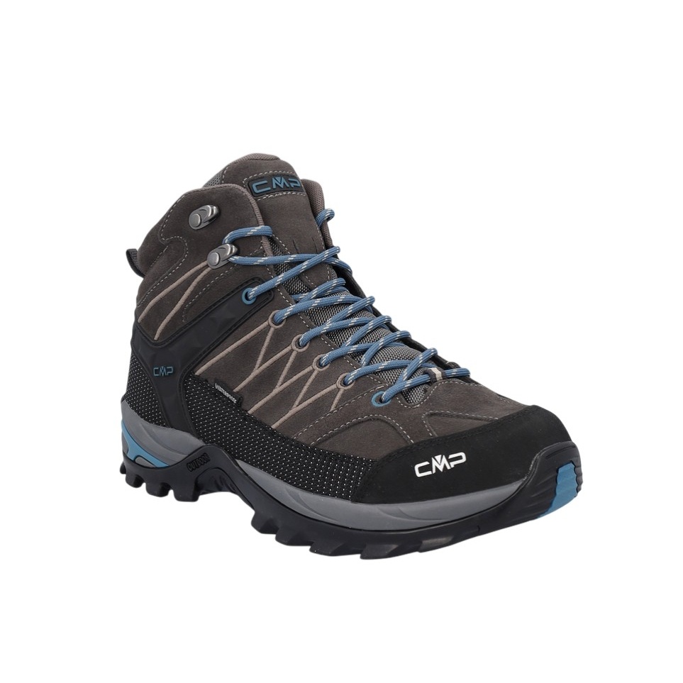• CMP Rigel Mid to wysoki, wodoodporny i wszechstronny męski but trekkingowy, który dzięki strukturze i mieszance materiałów podeszwy CMP FullOn GRIP nadaje się do wszystkich suchych i mokrych powierzchni