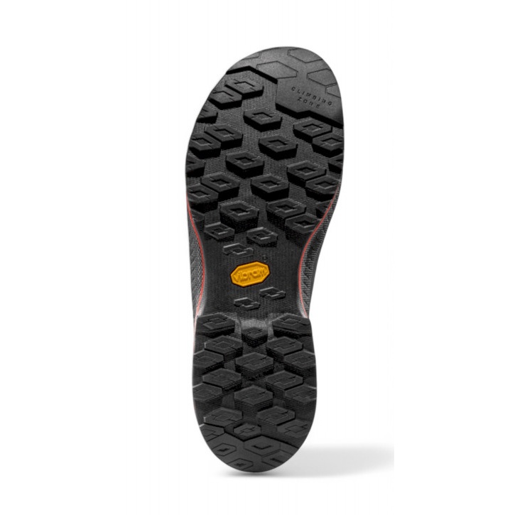 • na śliskich zejściach i trudnych podejściach podeszwa Vibram® MegaGrip z opatentowanym wzorem podeszwy systemu Impact Brake System™ ujawnia swoje mocne strony, zapewniając najwyższą stabilność i niezawodną kontrolę trakcji.