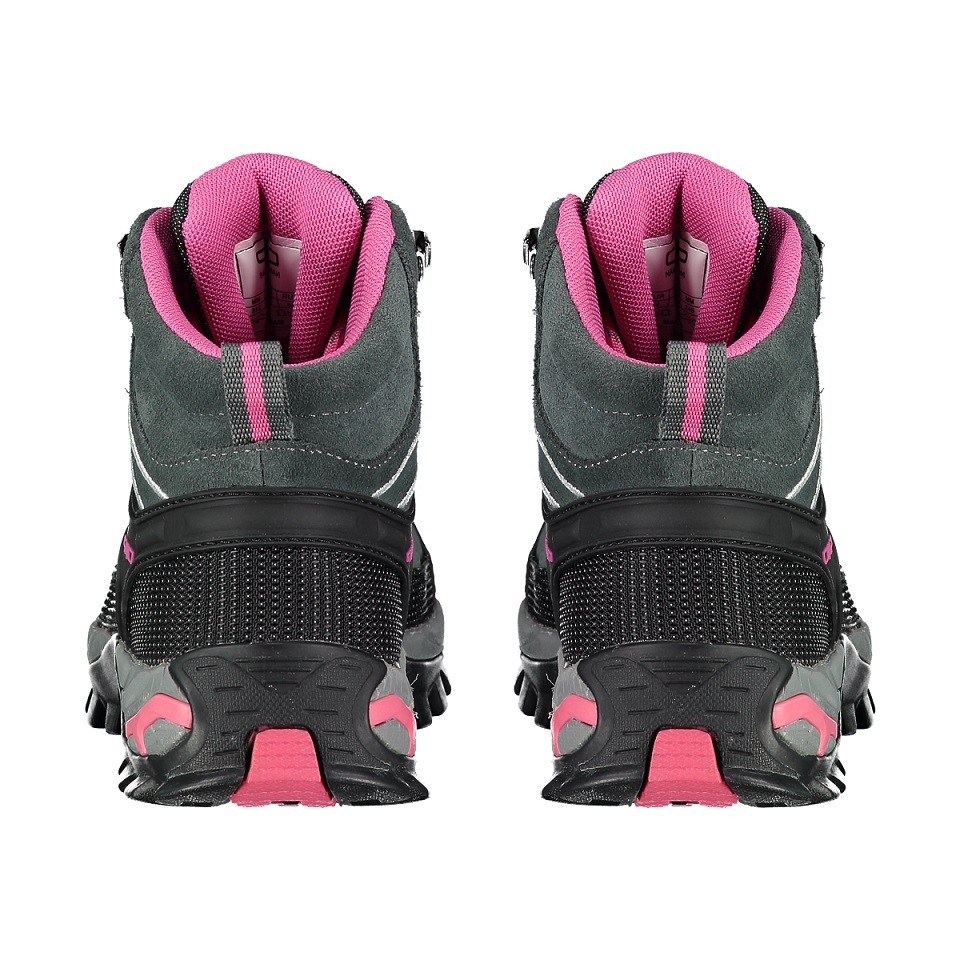 • CMP Rigel Mid to wysokie, wodoodporne i wszechstronne damskie buty trekkingowe, które dzięki strukturze i mieszance materiałów podeszwy CMP FullOn GRIP nadają się do wszystkich suchych i mokrych powierzchni