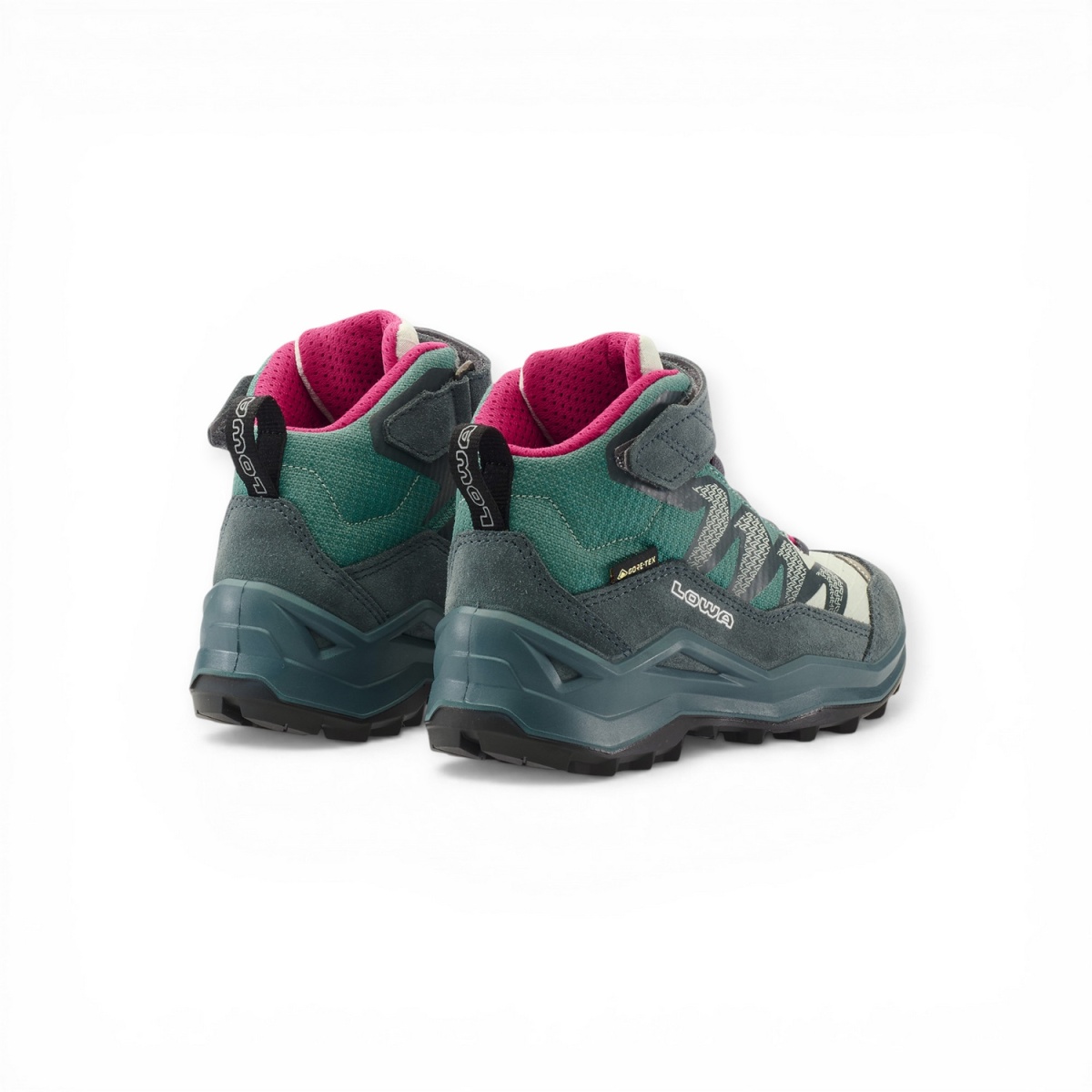 Lowa buty trekkingowe Maddox Pro Mid GTX na rzep Junior (tekstylia/skóra zamszowa, zapięcie na rzep, wodoodporne) petrol/różowy dziecięce