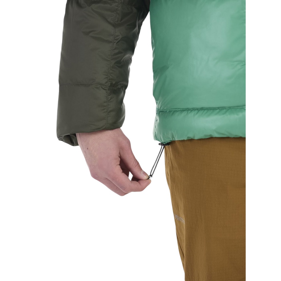 • dzięki zastosowanym przetworzonym i wodoodpornym puchom Marmot, ten hoodie zapewnia lepszą ochronę oraz dodatkową warstwę bezpieczeństwa w nieoczekiwanych warunkach