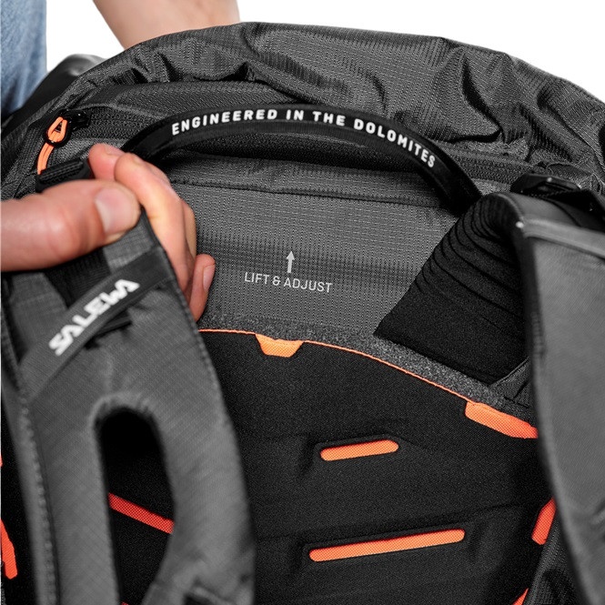 • nasz łatwo regulowany system nośny Dry Back Custom został opracowany w ramach naszych szerokich badań i prac rozwojowych we współpracy z alpinistami i profesjonalnymi sportowcami górskimi w Dolomitach