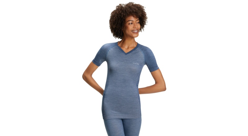 Falke Bielizna Funkcyjna Koszulka Krótki Rękaw Wool Tech Light (najlepsza wełna merino) niebieska Damska