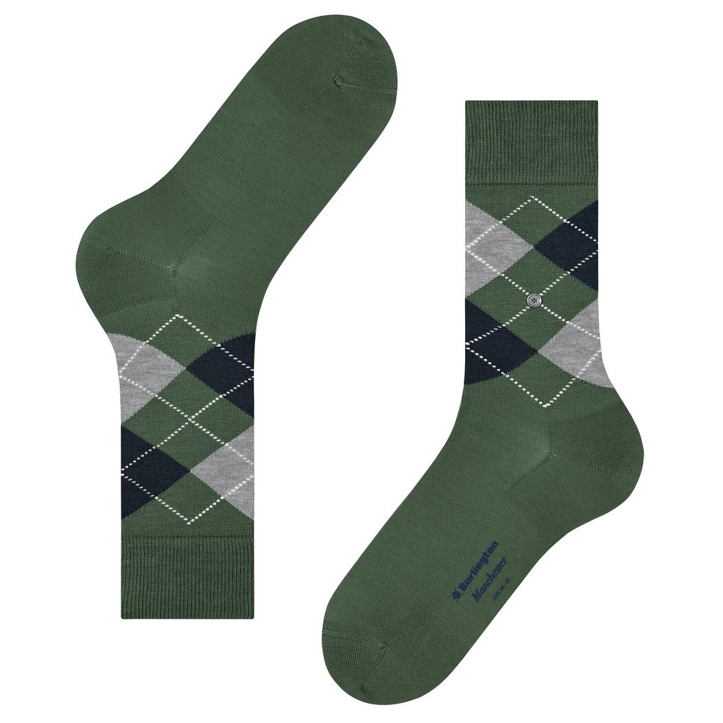 • uroczy klasyk – wysokiej jakości skarpetki Manchester z charakterystycznym wzorem Argyle i elegancko połyskującą, merceryzowaną bawełną są po prostu niezastąpione w szufladzie ze skarpetkami