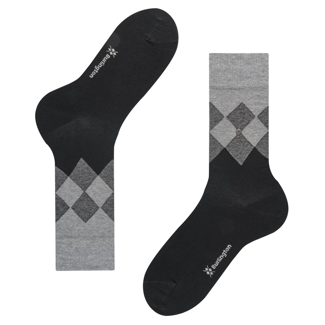 Alarm cenowy dla Burlington Skarpetki dzienne Hampstead (wzór Argyle, bawełna organiczna) czarny/szary męskie - 1 para