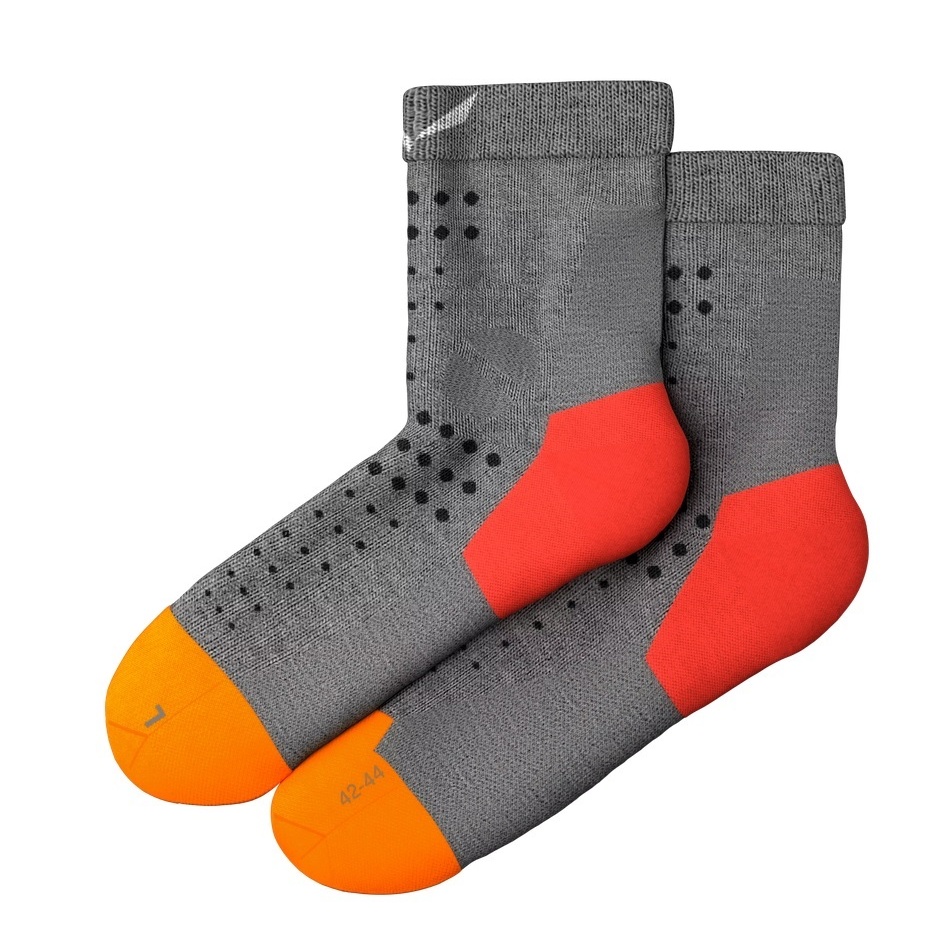Salewa Skarpetki trekkingowe Pedroc Merino (regulacja wilgotności i temperatury) Skarpetki krótkie szare/pomarańczowe męskie - 1 para