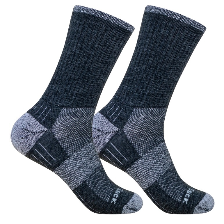 • dwuwarstwowe skarpety antyodciskowe z domieszką wełny merino i dodatkowym frotteowym wyściełaniem na długie wędrówki i sporty zimowe