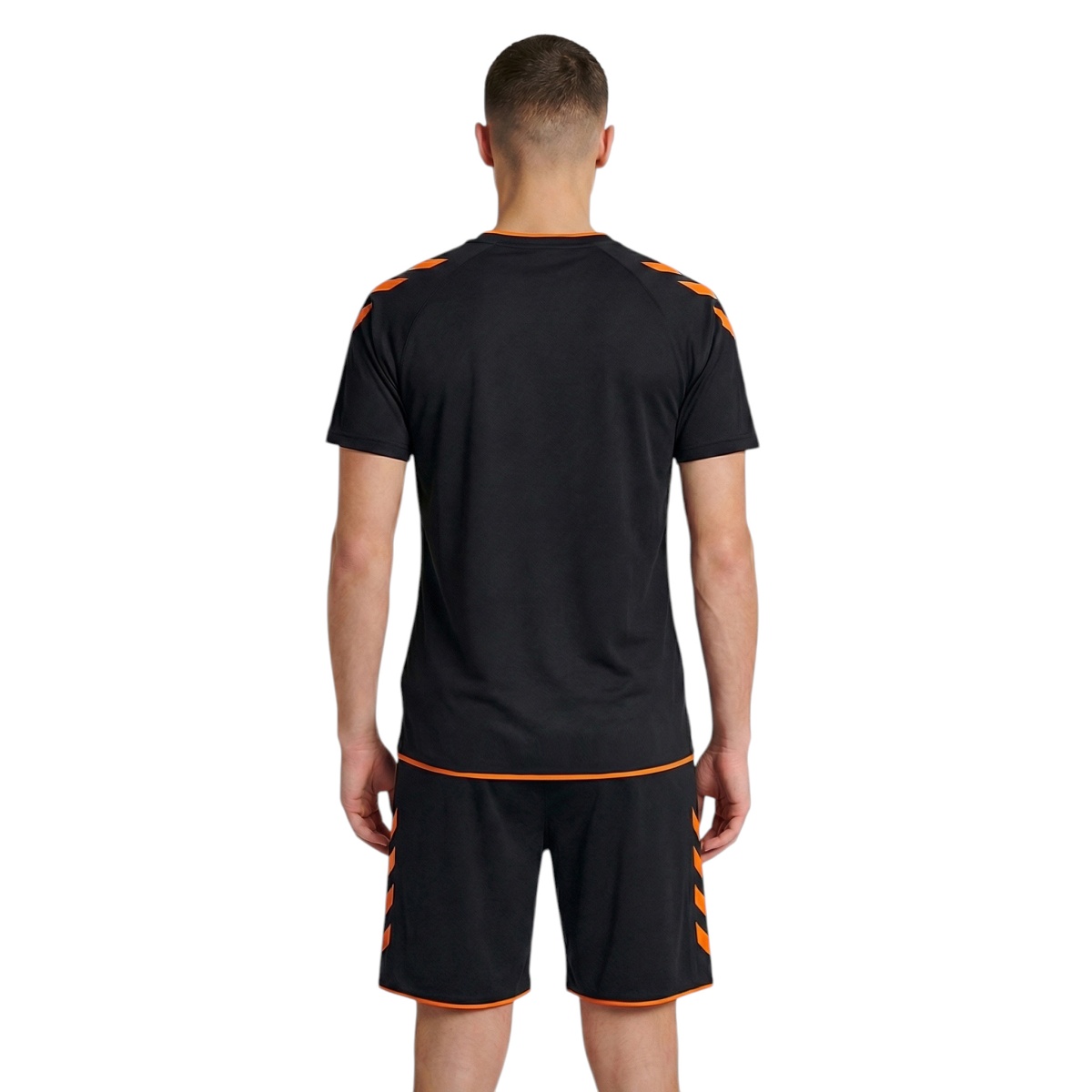 • koszulka ma rękawy raglanowe dla lepszej swobody ruchów, kontrastowe wstawki na ramionach oraz kultowe chevrony hummel na rękawach, które podkreślają sportowy wygląd drużynowy.