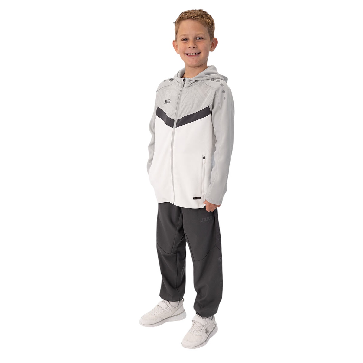 JAKO Kurtka z kapturem Iconic (Fleece poliestrowe, kieszenie boczne z zamkiem błyskawicznym) biały/szary/antracytowy dziecięcy