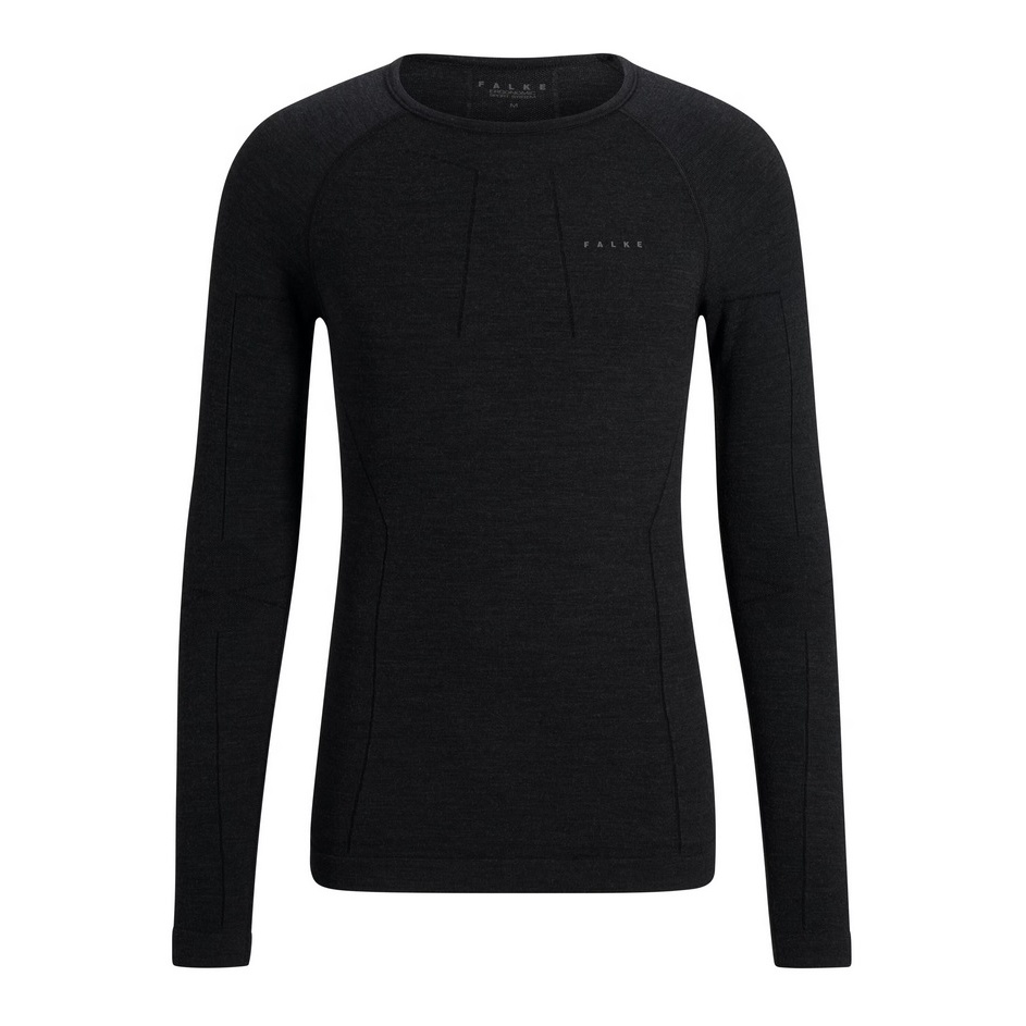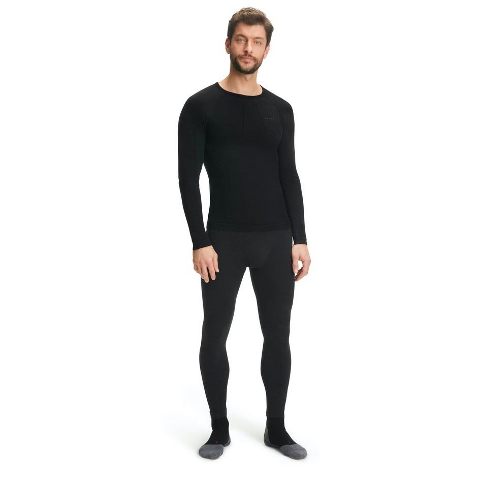 Falke Koszulka z długim rękawem Wool Tech (wełna merino) bielizna czarna męska