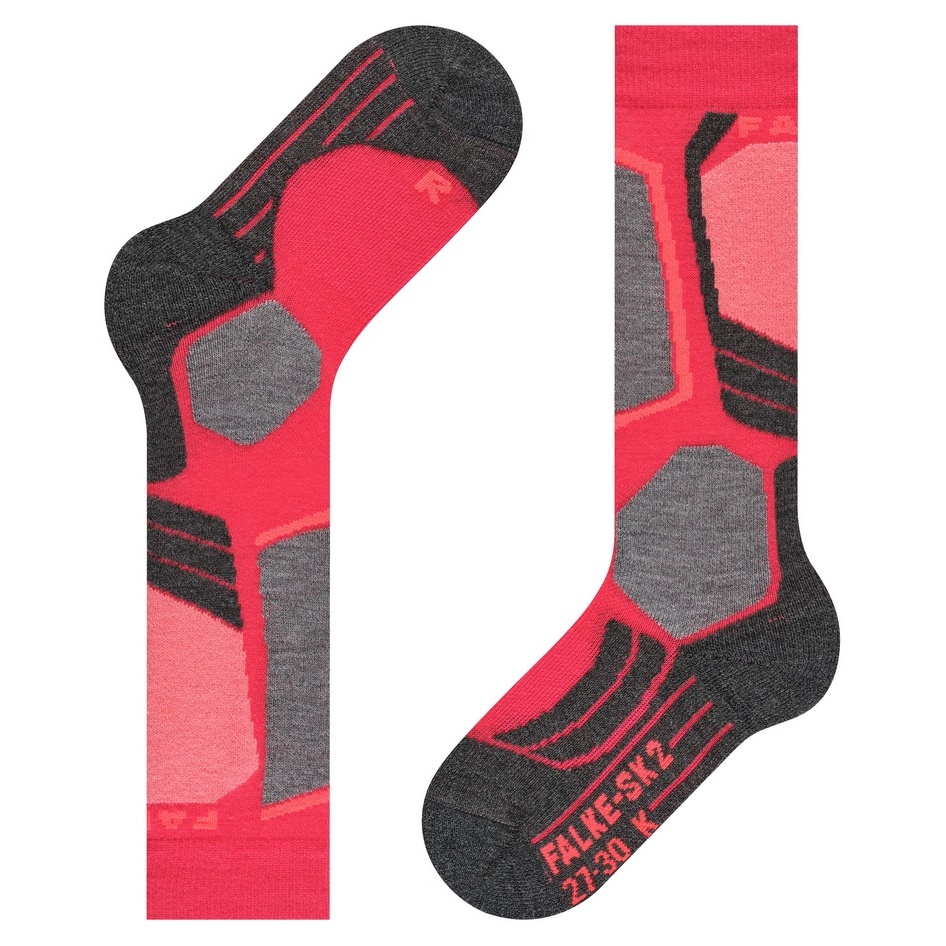 Skarpety narciarskie FALKE SK2 Intermediate różowe/czarne/szare dziecięce - 1 para