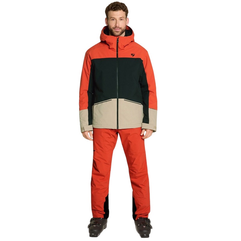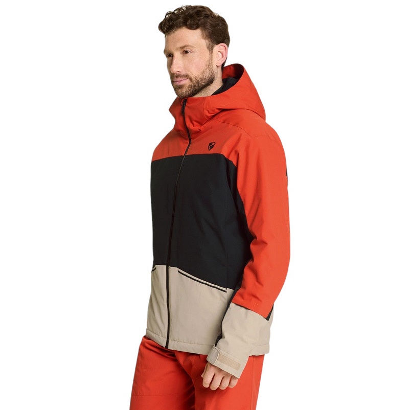 • techniczne szczegóły, takie jak stały, regulowany kaptur funkcjonalny, elastyczne mankiety wewnętrzne rękawów i stały śniegołap przyczyniają się do wysokiego komfortu funkcjonalnego tej kurtki narciarskiej