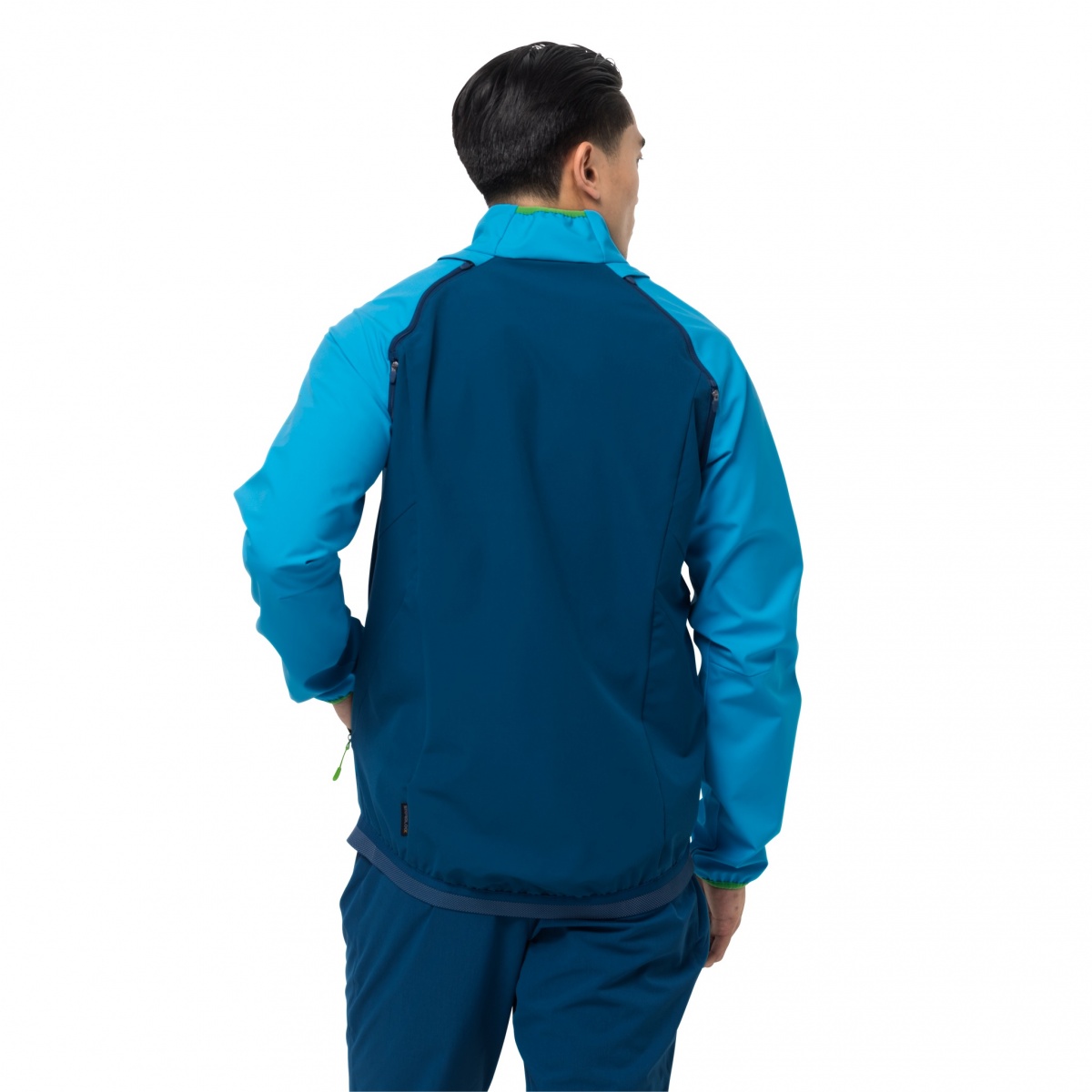• Dlatego z przodu i na rękawach wykonana jest z wyjątkowo lekkiego, wiatroszczelnego i oddychającego materiału softshell