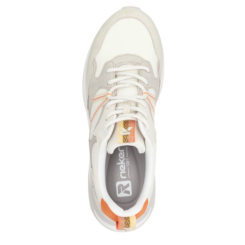 • wykonane z wysokiej jakości tekstyliów białe-beżowe sneakersy Rieker Low.