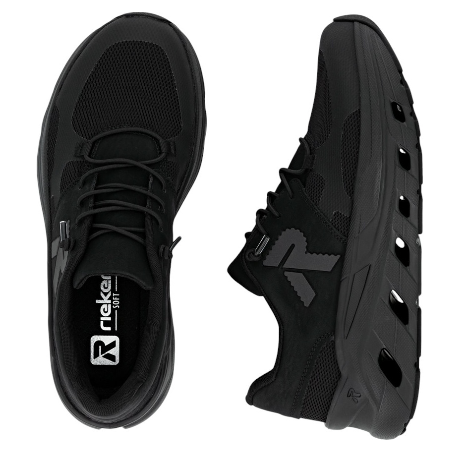 • czarne sneakersy Rieker Low dla mężczyzn z wysokiej jakości tekstyliów.