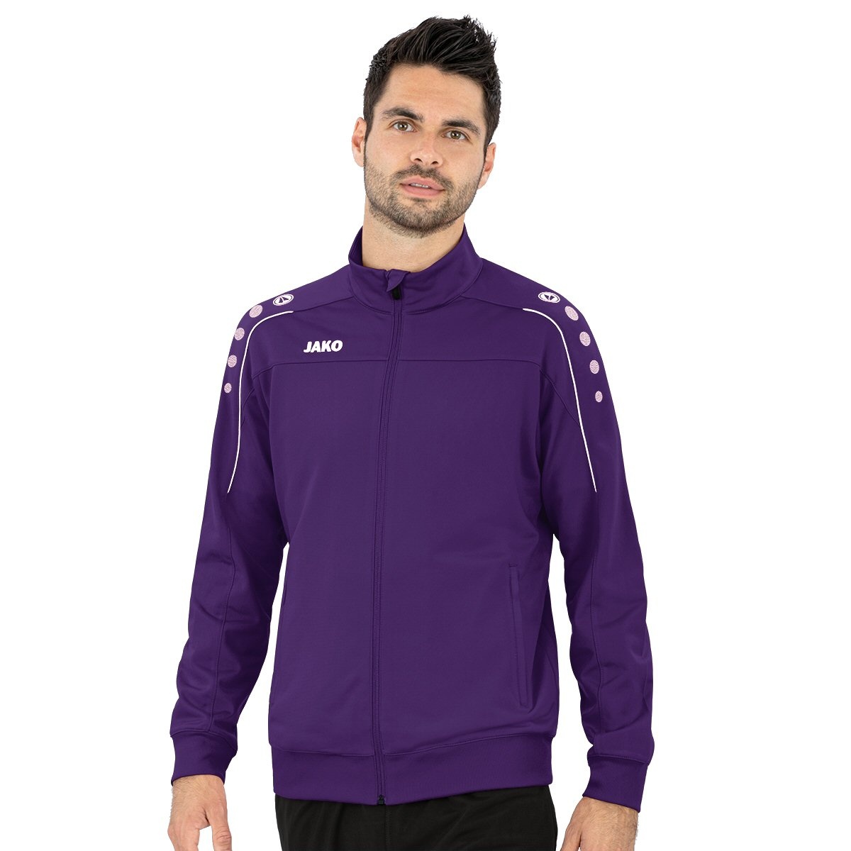 JAKO Dres treningowy z poliestru Classico (kurtka i spodnie, 100% poliester) fioletowy/czarny mężczyźni