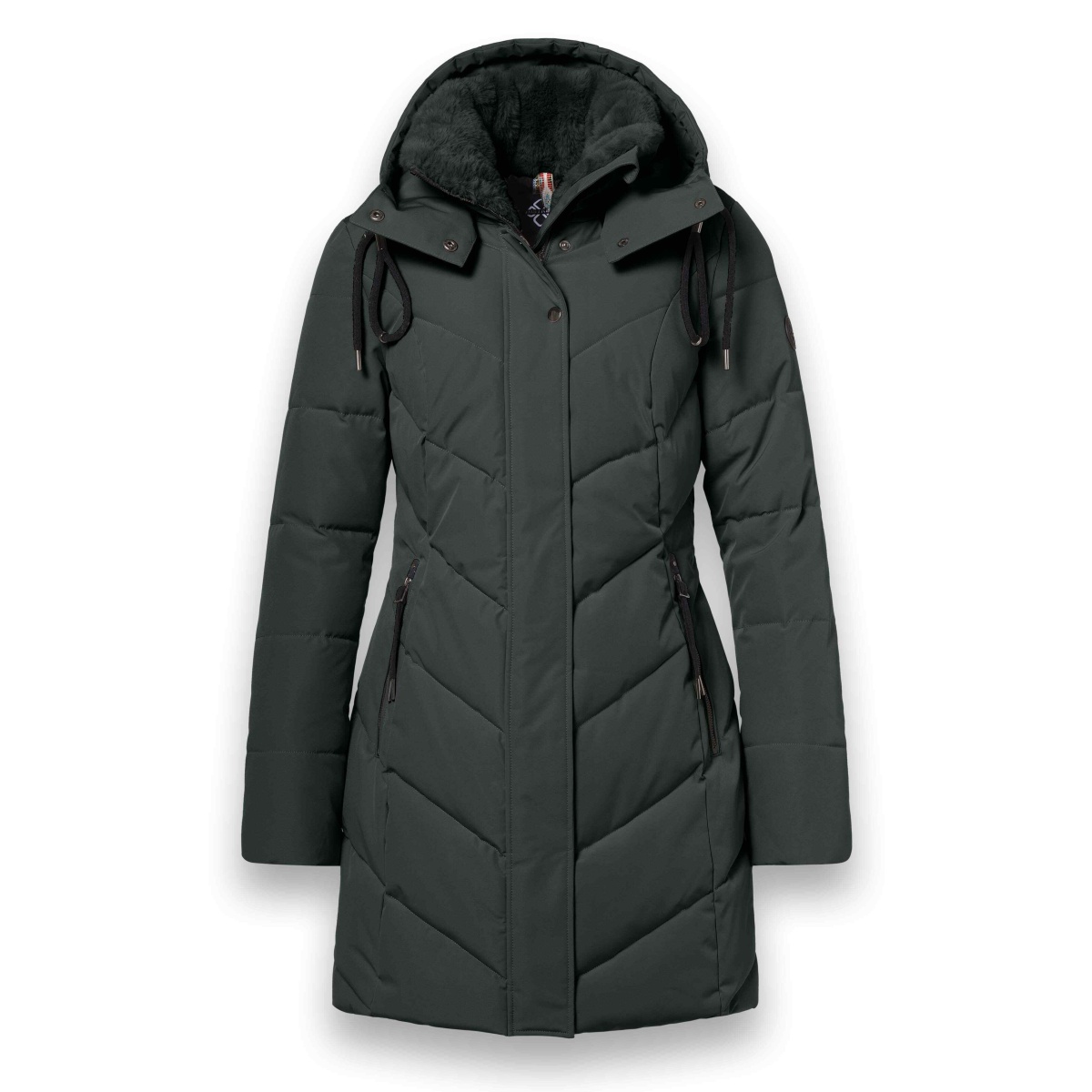 • funkcjonalna kurtka z odpinanym, regulowanym kapturem i kołnierzem z futerkiem sztucznym