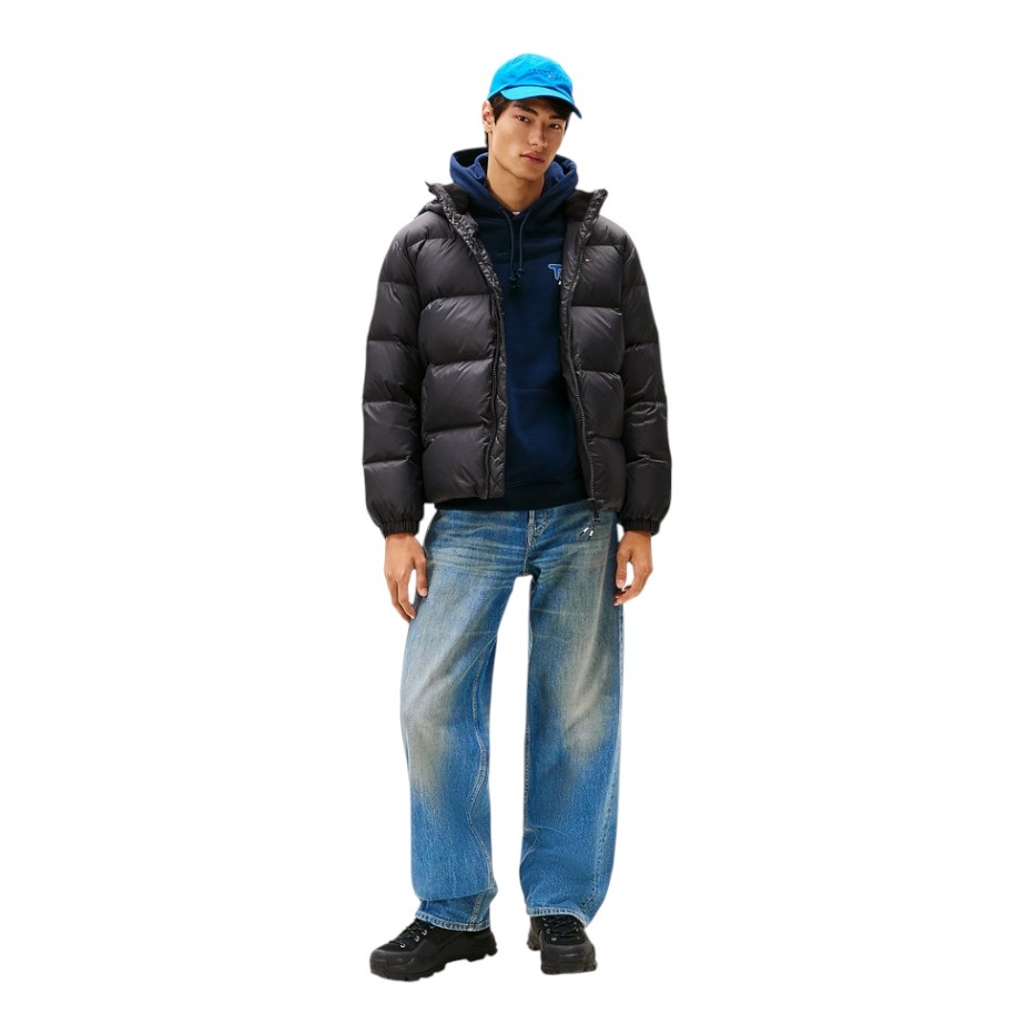 Tommy Jeans zimowa kurtka puchowa Essential Down Jacket EXT z kapturem (ciepła, wodoodporna) czarna męska