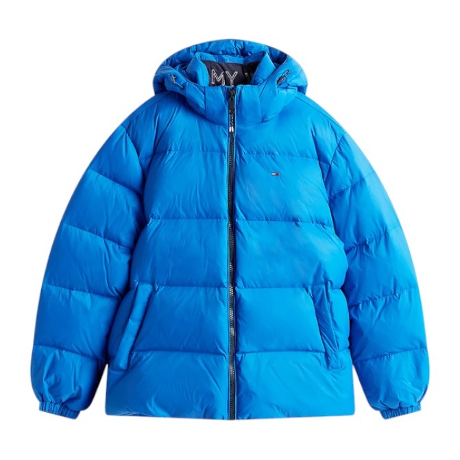 Tommy Jeans zimowa kurtka puchowa Essential Down Jacket EXT z kapturem (ciepła, wodoodporna) indygo niebieska męska