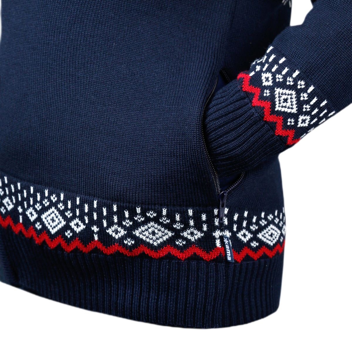 Alarm cenowy dla Kama Sweter Pullover 3054 Full Zip z wełny merino (materiał dzianinowy, wiatroszczelny) granatowy męski