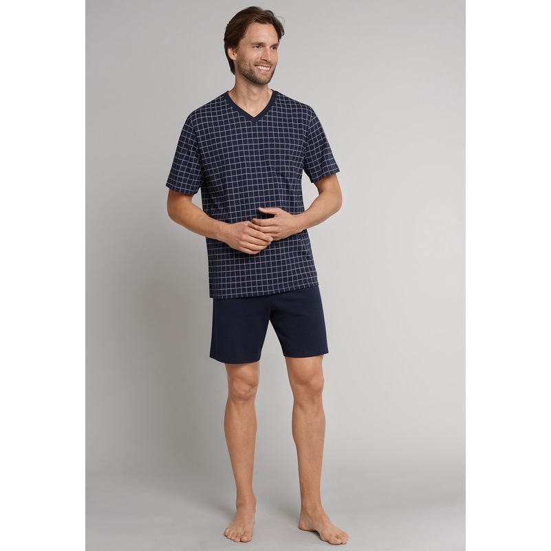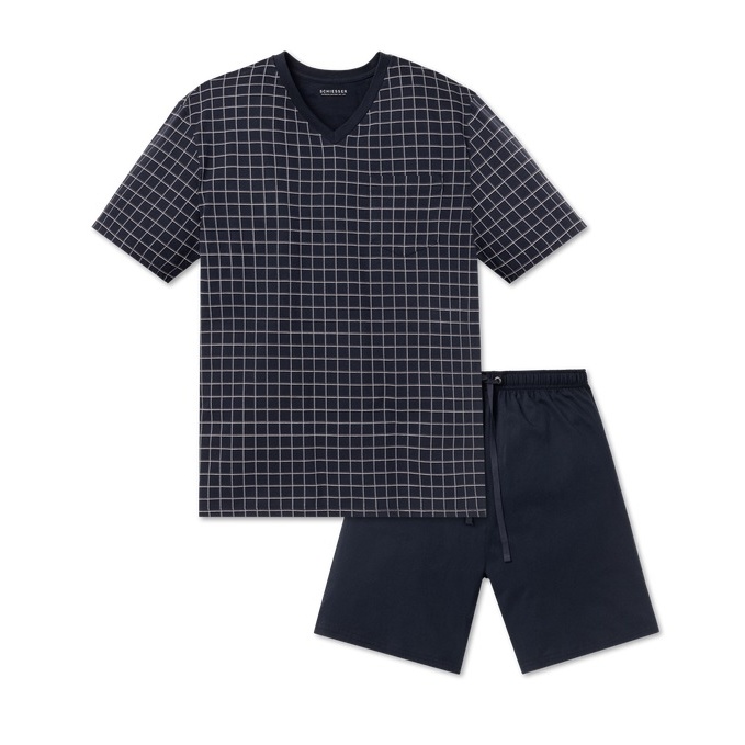 Alarm cenowy dla Schiesser Bielizna Piżama Dark Sapphire Bawełna organiczna krótka - wzór ciemnoniebieski Mężczyźni