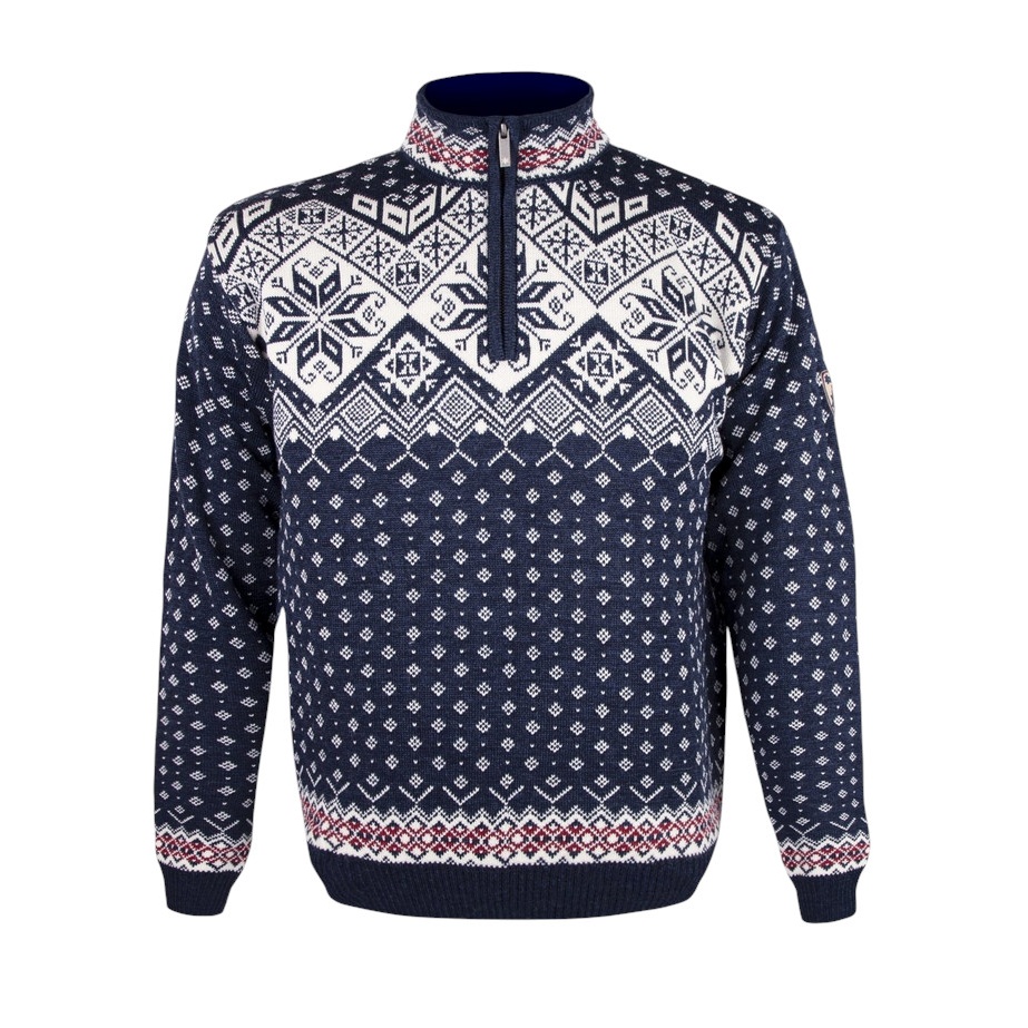 Alarm cenowy dla Kama Sweter Pullover 4082 Half Zip z nordyckim wzorem (wełna merino) granatowy męski