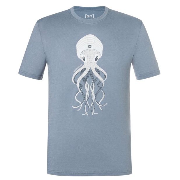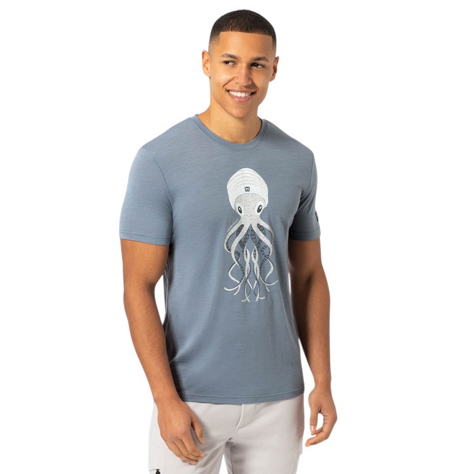 super natural Koszulka sportowa / rekreacyjna Octopussy Tee (mieszanka merino, wygodny krój) szary kamień/niebieski męski